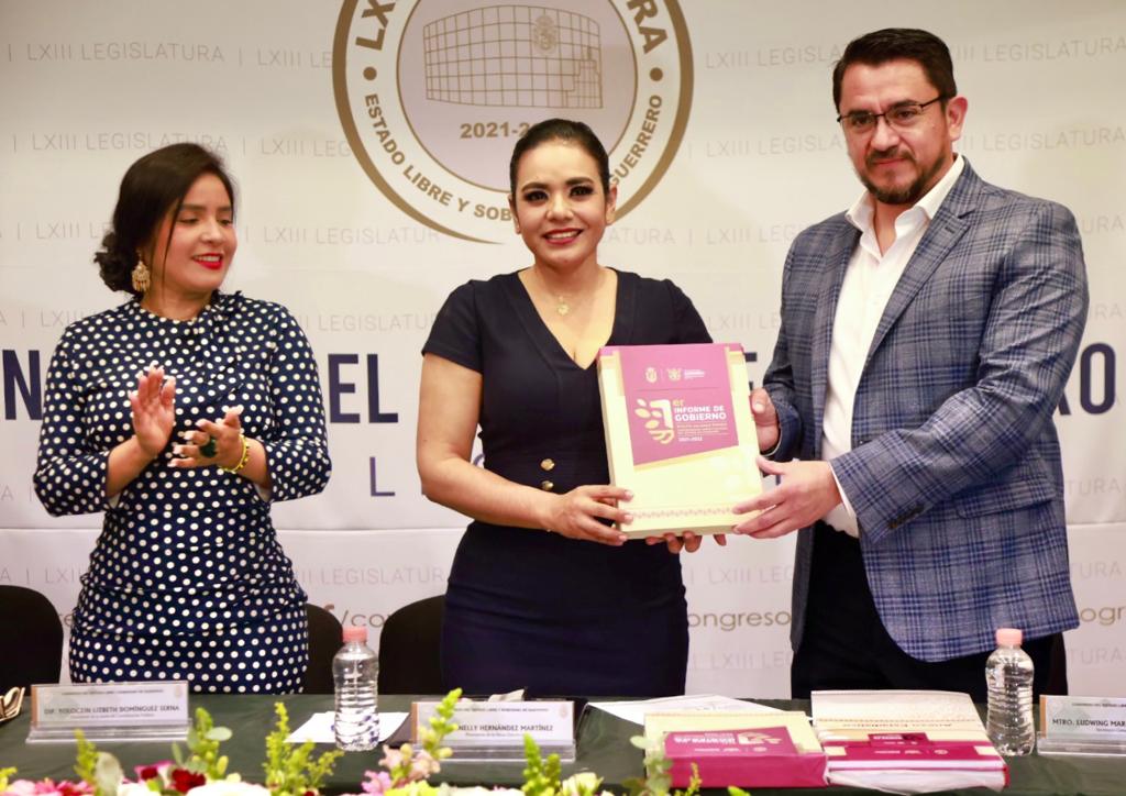 Chilpancingo, Gro., 14 de octubre de 2022. – El secretario general de Gobierno, Ludwig Marcial Reynoso Núñez, entregó a la 63 Legislatura al Congreso del Estado de Guerrero, el Primer Informe de Gobierno, para dar cuenta del estado que guarda la administración pública estatal que encabeza la gobernadora Evelyn Salgado Pineda, cumpliendo con el ejercicio democrático de la rendición de cuentas y transparencia en los recursos ejercidos y las acciones realizadas por el Poder Ejecutivo de Guerrero.
