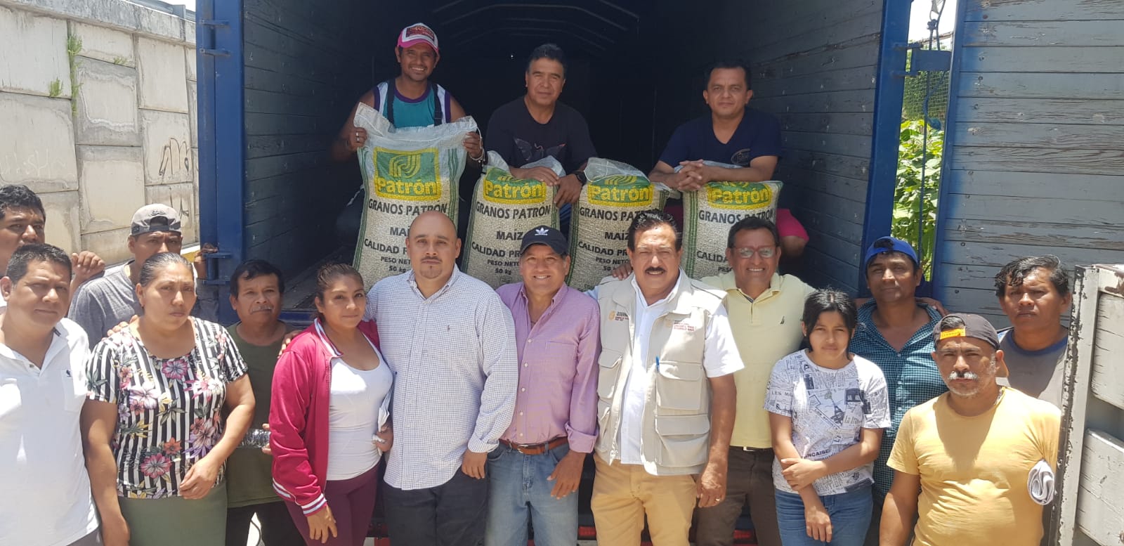 En representación del titular de la Secretaría de Agricultura, Ganadería, Pesca y Desarrollo Rural, Alejandro Zepeda Castorena, realizaron la entrega del maíz el subsecretario de Agricultura e Infraestructura Rural, Adalid Pérez Galeana y el secretario técnico, Arturo Núñez Mendoza.
