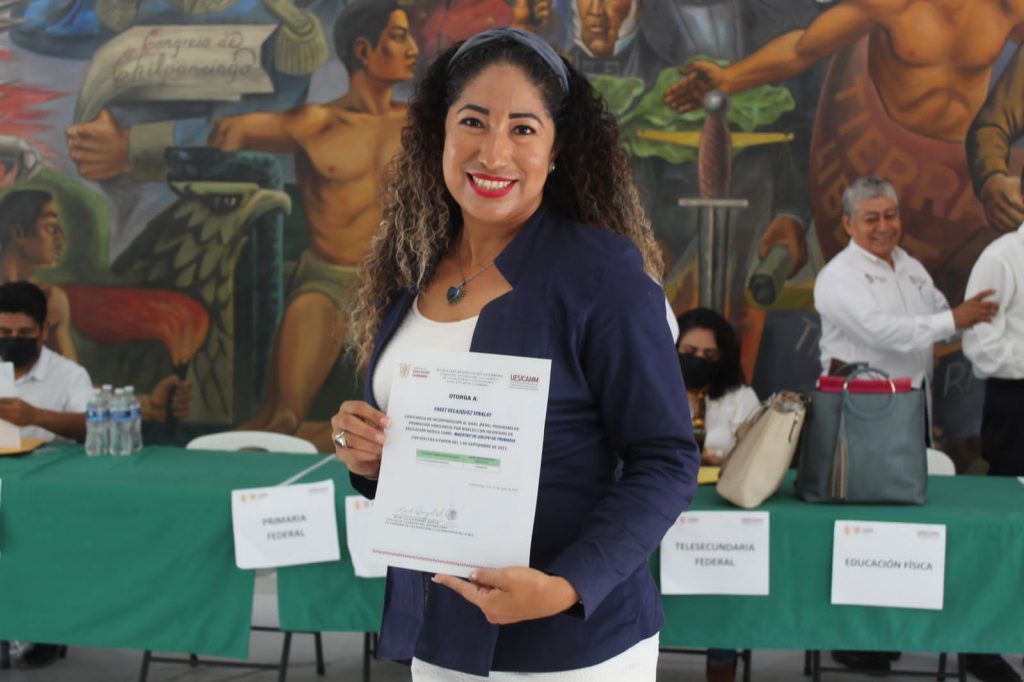 Chilpancingo, Gro., 13 de octubre de 2022.- Con el objetivo de reconocer el mérito y la vocación del personal que realiza funciones docentes, técnico docente, asesoría técnica pedagógica, dirección, supervisión y jefaturas de enseñanza que participaron en un riguroso proceso de selección y lograron promoverse de manera horizontal, se entregaron constancias de incorporación al nivel 01 con incentivos.