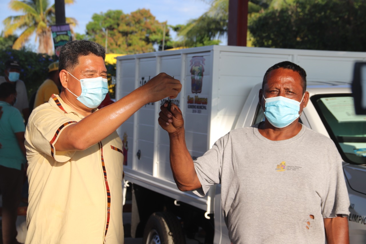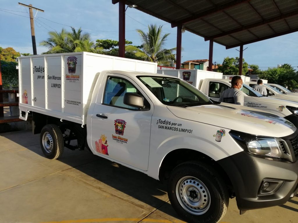 SAN MARCOS, GUERRERO; 14 de octubre del 2020.- Con una inversión mayor al millón de pesos, el Alcalde Tomás Hernández Palma, entrego 4 nuevos vehículos destinados a mejorar los trabajos de recolección de basura y disminuir los gastos que representa la renta de camiones para prestar este servicio a la cabecera municipal y comunidades vecinas.