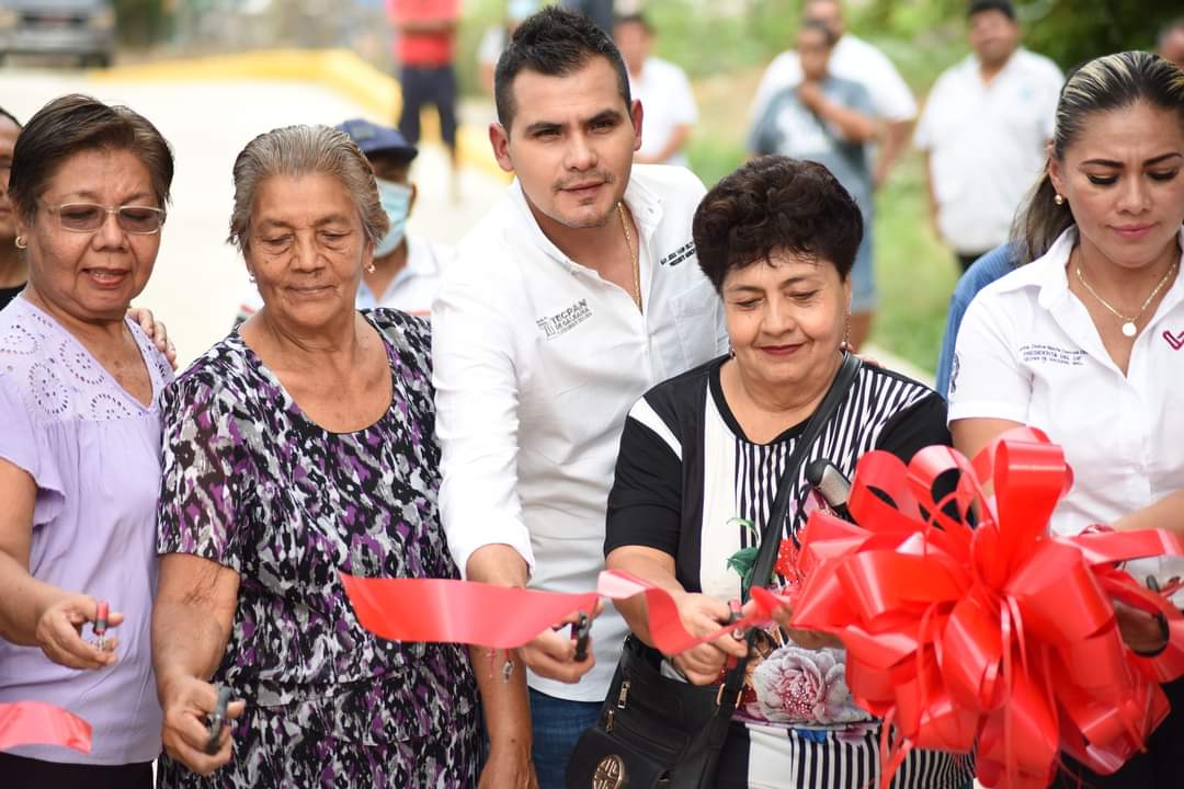 Tecpan de Galeana, Gro; 03 de junio de 2022.-“El gobierno municipal trabaja de manera incansable, llevando obras y beneficios a la población”, indicó el alcalde Yasir Deloya Díaz al inaugurar ayer por la tarde la pavimentación con concreto hidráulico del acceso principal a la colonia #NuevoHorizonte para Guerrero.