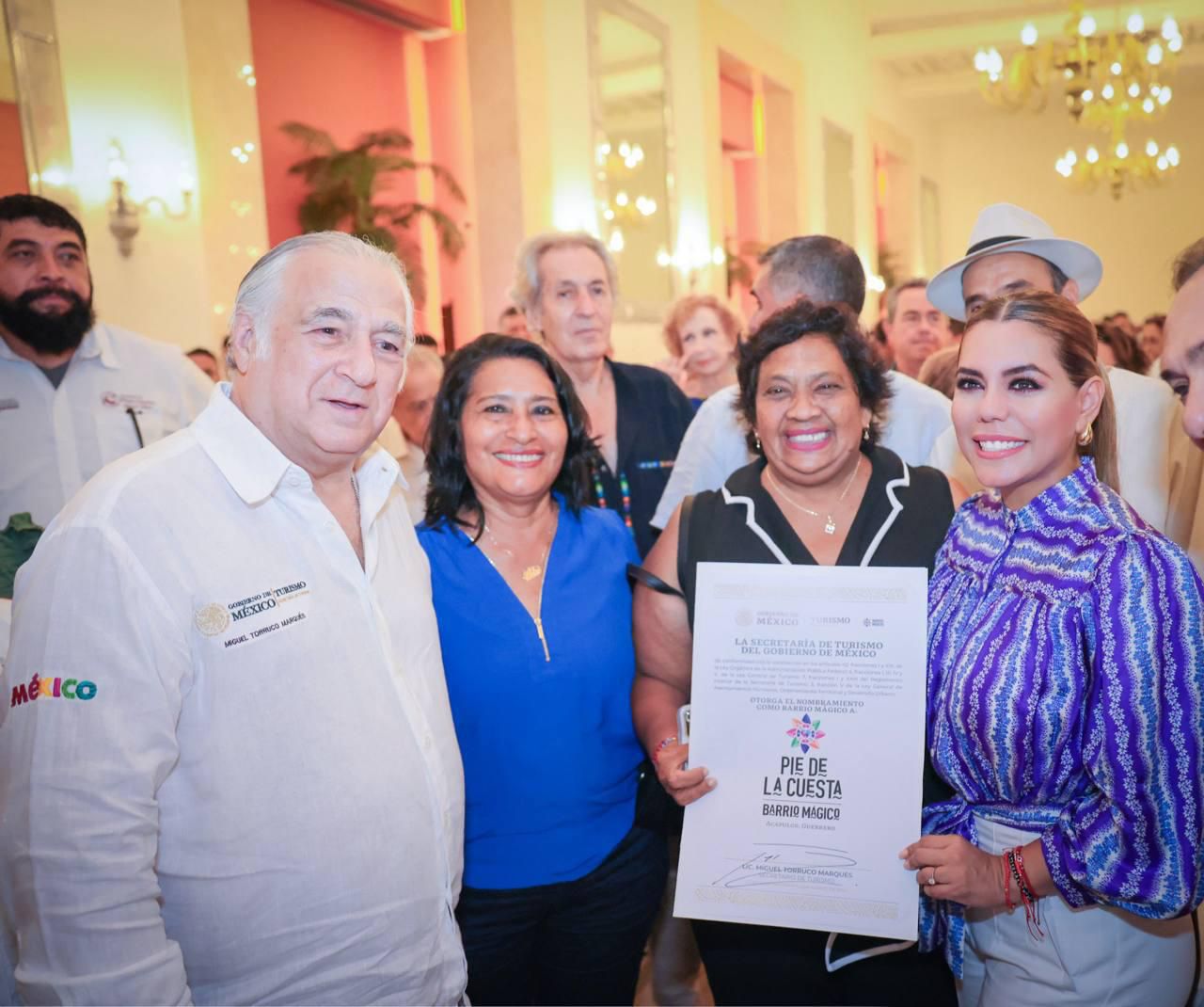 Acapulco, Gro., 02 de agosto de 2024- La Presidenta Municipal Abelina López Rodríguez, entregó junto a la Gobernadora Evelyn Salgado Pineda y el Secretario de Turismo, Miguel Torruco Marqués, nombramientos de barrios mágicos a las playas de Pie de la Cuesta y Playa Bonfil de Acapulco, como parte del programa Federal en apoyo a la recuperación de Acapulco después del paso del huracán Otis.