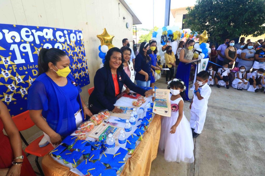 La encargada del Jardín de Niños, Dulce María de Los Santos Ramírez, agradeció a la alcaldesa por los apoyos que ha brindado a su institución: “Tenemos ante nosotros a la presidenta municipal, en quien hemos encontrado un eco maravilloso, este jardín de niños desde su fundación no había recibido tanto apoyo como lo estamos recibiendo en estos días, nos honra por podernos facilitar la construcción de aulas que tanta falta nos hace, muchísimas gracias doctora Abelina” dijo.
