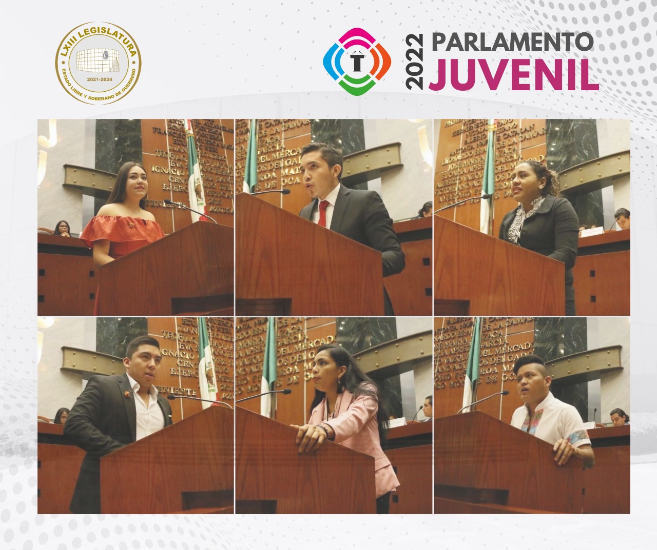 El Parlamento Juvenil 2022 estará integrado por Emly Eusebia Castro López, Brenda García García, Elsy Yatziry Rivera Delgado, Alondra Iturbide Cruz, Jesús David Herrera Rodríguez, Jezreel Ortiz Romero, Alejandro Aguirre Alonso, Luis Gerónimo Godoy Nava, Denisse Arantza Ayala Flores, Marisol Martínez Guzmán, Ulises Raúl Ramírez Villegas, Luis Fernando Mendoza García.
