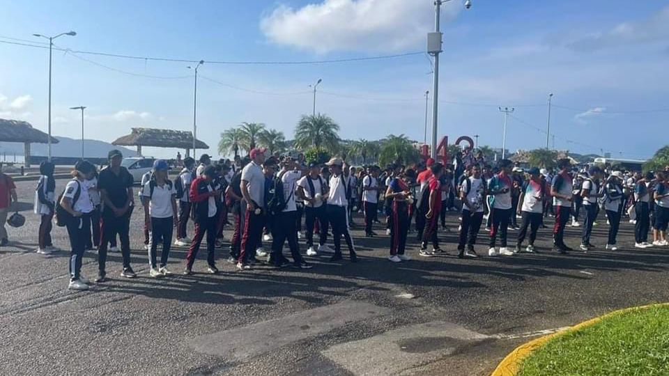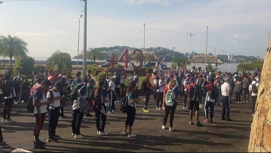 Fue cerca de las 08:00 de la mañana cuando los estudiantes cerraron el carril que va de Caleta a La Base y comenzaron un mitin en donde reclamaron la falta de atención por parte de las autoridades federales a las demandas de información y resultados para los padres de los normalistas desaparecidos.