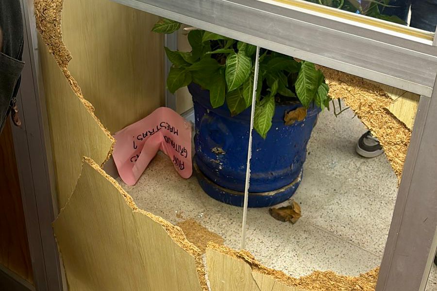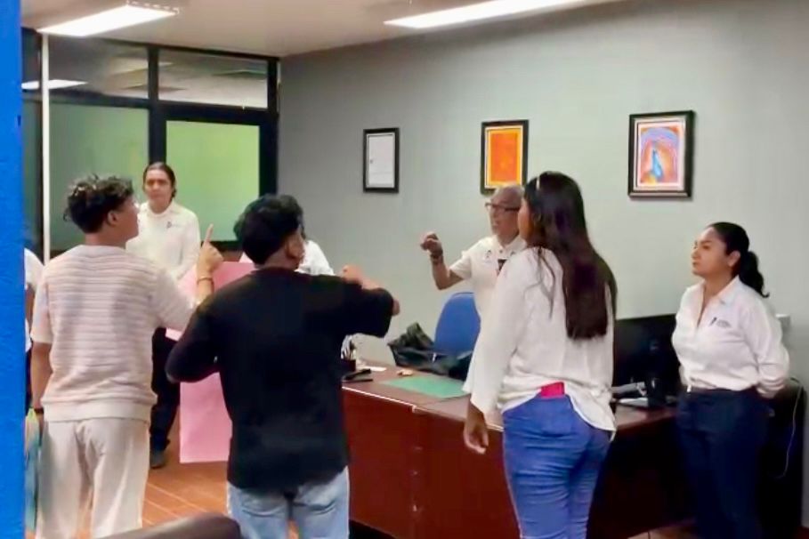 Durante la protesta, el grupo de inconformes realizó destrozos en una puerta y se rompieron vidrios, donde uno de los estudiantes se cortó en la mano.