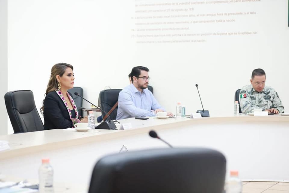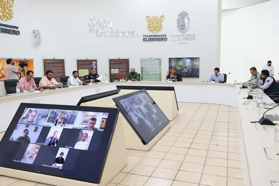 Chilpancingo, Gro. 27 de mayo de 2022.- La Gobernadora, Evelyn Salgado Pineda, encabezó la sesión de la Mesa de Coordinación para la Construcción de la Paz acompañada de mandos militares, de seguridad pública y procuración de justicia, con quienes atienden de manera diaria los temas de alto impacto y dan el puntual seguimiento que permita mantener el orden social en la entidad.