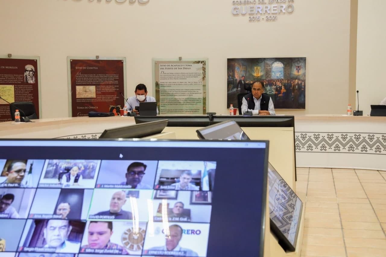 CHILPANCINGO, GRO., 17 de junio, 2021- El Gobernador Héctor Astudillo Flores y autoridades de la Mesa de Coordinación para la Construcción de la Paz, evaluaron las acciones de seguridad en las siete regiones de Guerrero, así como la prevención dirigida a los 81 municipios ante la presencia de una zona de inestabilidad con el 70 por ciento de potencial ciclónica frente al litoral guerrerense.