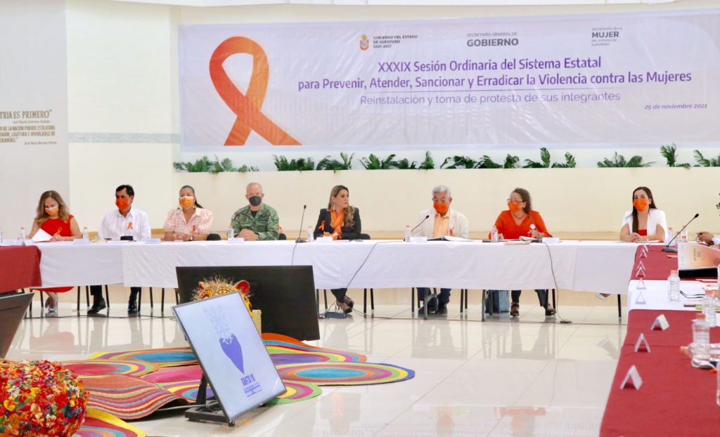 Chilpancingo, Gro., 25 de noviembre de 2021.- No vamos a permitir que bajo el amparo de tradiciones, usos y costumbres se atente contra el desarrollo y bienestar de nuestras niñas y mujeres en Guerrero, enfatizó la gobernadora Evelyn Salgado Pineda al presidir la XXXIX Sesión Ordinaria del Sistema Estatal para Prevenir, Atender, Sancionar y Erradicar la Violencia Contra las Mujeres.