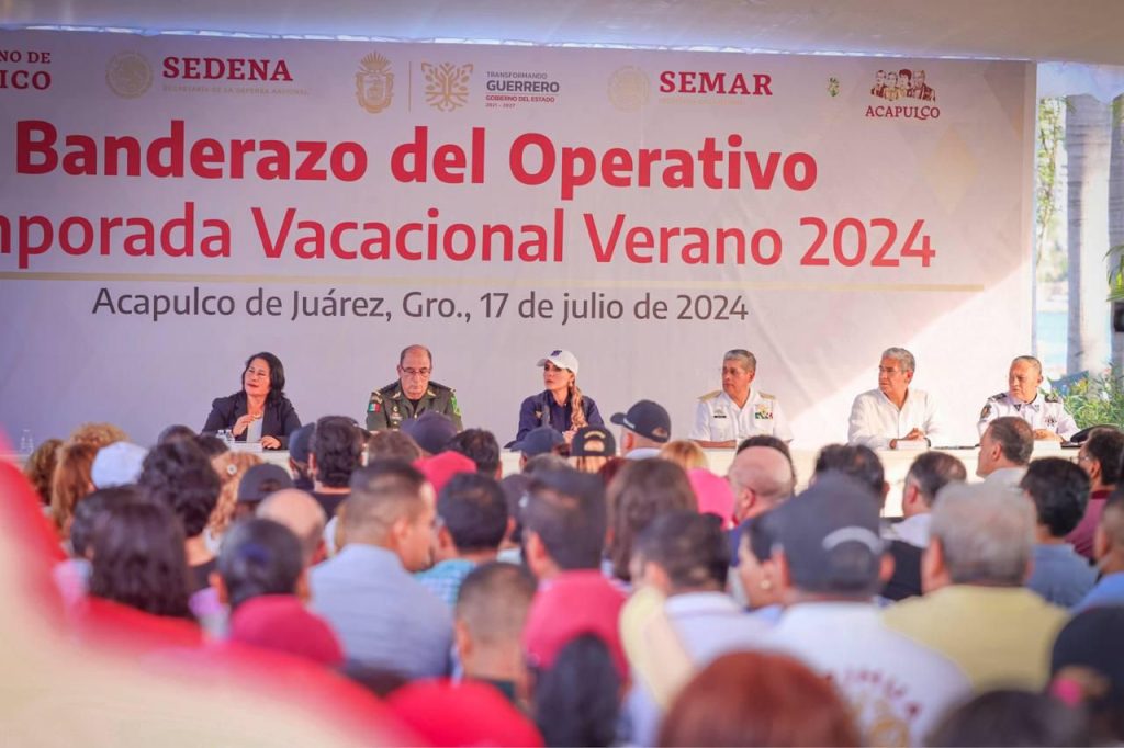 Acapulco, Gro., 17 de julio de 2024.- Con el objetivo de proteger y salvaguardar la integridad de las y los vacacionistas nacionales e internacionales que visitan los distintos destinos de la entidad, así como brindar seguridad y bienestar a la población guerrerense, la gobernadora Evelyn Salgado Pineda dio el banderazo del Operativo Vacacional Verano 2024, en el que participan más de 5 mil elementos de las corporaciones de seguridad de los tres órdenes de gobierno.