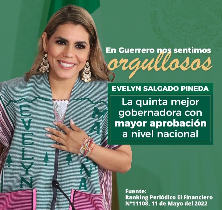 Chilpancingo, Gro., 11 de mayo de 2022.- Como resultado de su trabajo y compromiso por los guerrerenses con la puesta en marcha de programas, obras y acciones, Evelyn Salgado Pineda se ubica entre los 5 gobernadores del país con mayor aprobación por la ciudadanía.