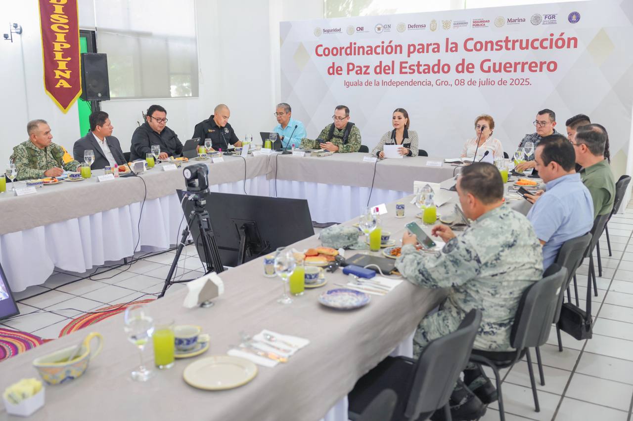 Iguala, Gro., 8 de julio de 2025.- Con el objetivo de reforzar las acciones en materia de seguridad y dar seguimiento puntual a la incidencia delictiva, la gobernadora Evelyn Salgado Pineda encabezó en las instalaciones del 27 Batallón de Infantería en Iguala, los trabajos de la Mesa de Coordinación para la Construcción de la Paz, con presidentas y presidentes municipales de la región Norte de Guerrero.