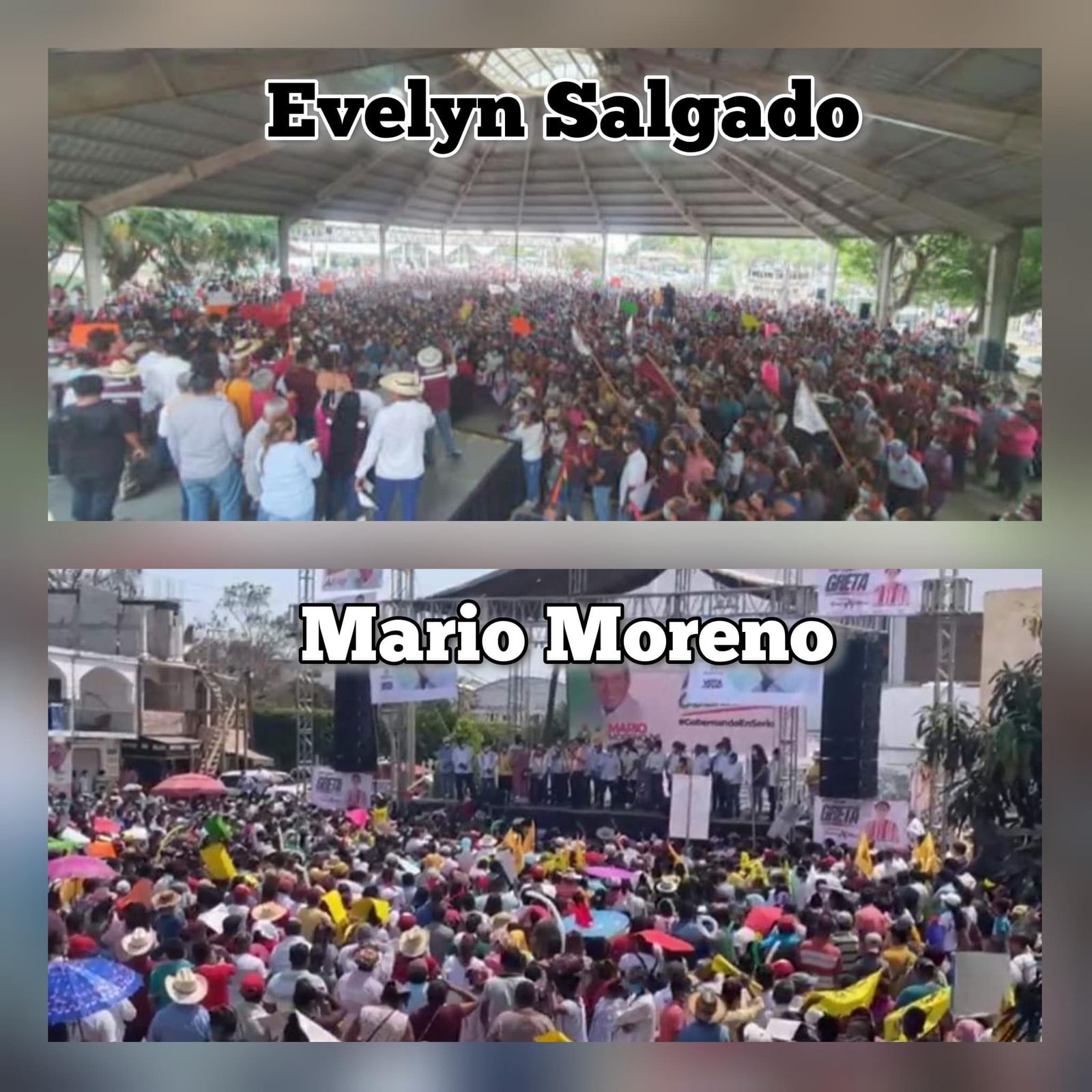 ¡Juzgue usted mismo! La cantidad de gente en el evento de Evelyn ésta tarde y el deslucido evento que le organizaron Angel Aguirre y Manuel Añorve a su candidato en Ometepec, a principios de Abril; las diferencias son enormes y demuestran que la gente en aquella región quiere un cambio verdadero de la mano de la 4T y Evelyn Salgado.