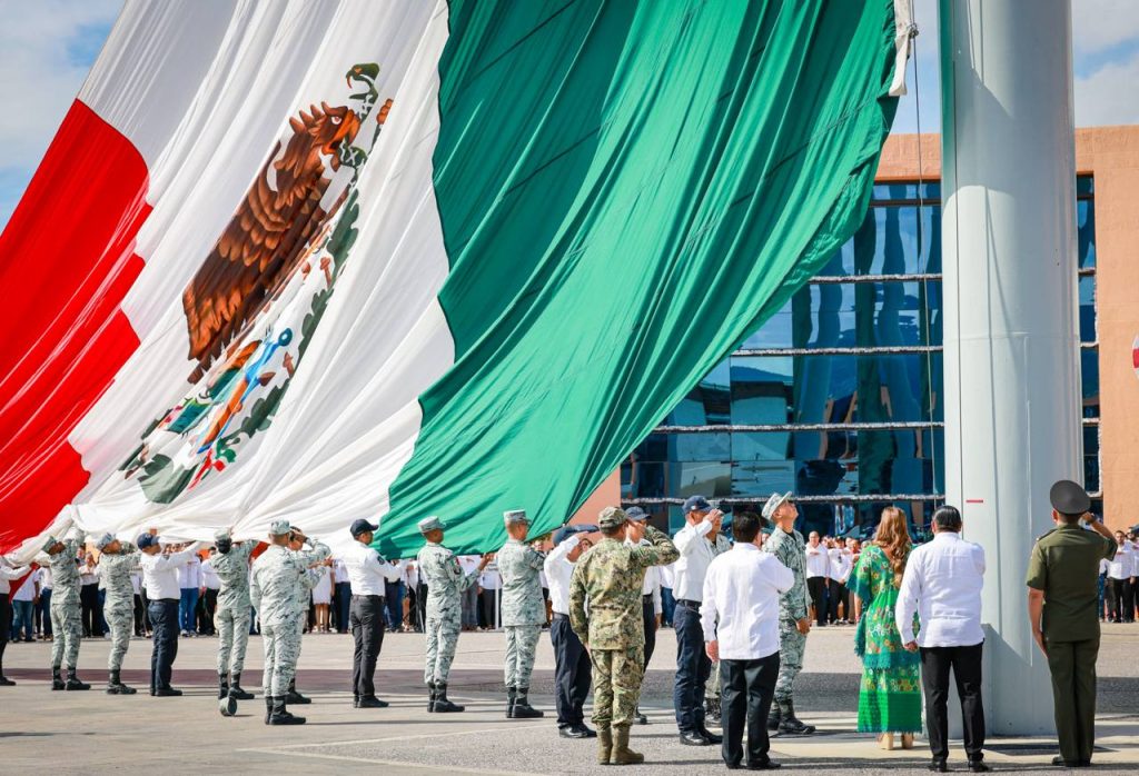 Chilpancingo, Gro., 3 de septiembre de 2024. – Con la invitación a celebrar la Independencia de México la noche del 15 de septiembre en la Casa del Pueblo en Chilpancingo, la gobernadora Evelyn Salgado Pineda presidió la ceremonia de Izamiento de Bandera correspondiente al mes de las fiestas patrias, donde reafirmó su compromiso de seguir trabajando por una transformación profunda y radical en Guerrero.