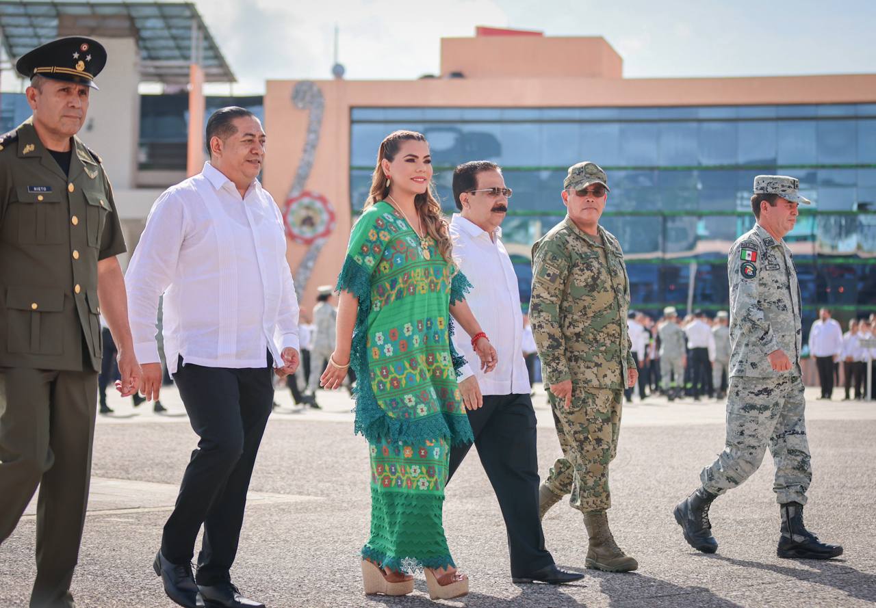 “Hoy, con nuestros lábaros patrios como testigos, reafirmemos el compromiso de seguir trabajando por las familias de Guerrero, de seguir avanzando en los pendientes que tenemos como gobierno y cuya responsabilidad no podemos rehusar hasta consolidar el estado que queremos, que merecemos y que juntos estamos construyendo”, puntualizó la gobernadora de Guerrero.
