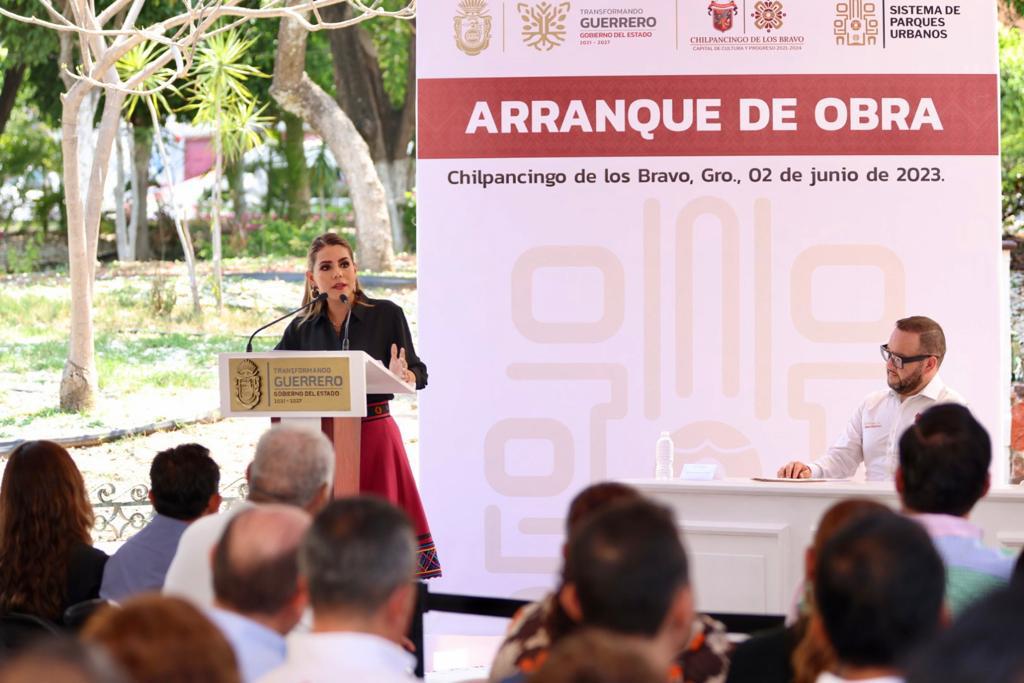 Chilpancingo, Gro., 2 de junio del 2023. – La gobernadora Evelyn Salgado Pineda y la alcaldesa Norma Otilia Hernández Martínez, dieron el banderazo de arranque a las obras de rehabilitación del primer circuito del Sistema de Parques Urbanos de Chilpancingo con un monto de inversión de 36.5 millones de pesos, con el objetivo de recuperar y dignificar los espacios públicos para la recreación y disfrute de las familias chilpancingueñas.