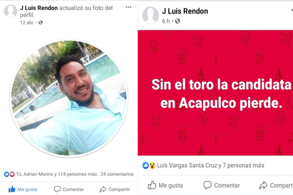 José Luis Rendón, del círculo cercano al regidor Ilich Lozano Herrera, sentenció en redes sociales: “Sin el toro la candidata en Acapulco pierde”. Y la publicación hubiese pasado desapercibido si él no perteneciera al equipo de trabajo del edil porteño, quien ha refrendado públicamente su apoyo a Abelina López de cara al proceso electoral.