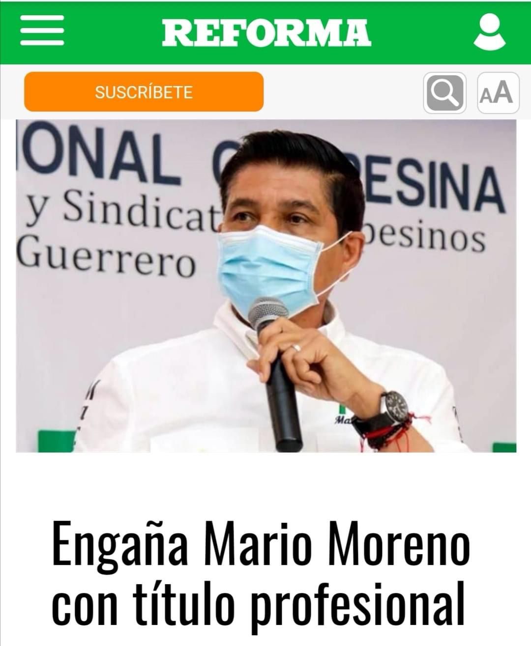 El periódico Reforma incluyó en su edición de ayer un amplio reportaje titulado “Engaña Mario Moreno con título profesional”, en el que detalla las múltiples ocasiones en que el ahora candidato de la alianza PRI PRD, se ha ostentado como contador público para ocupar cargos de elección y dentro de la función pública presumiendo una formación académica con la que no cuenta.
