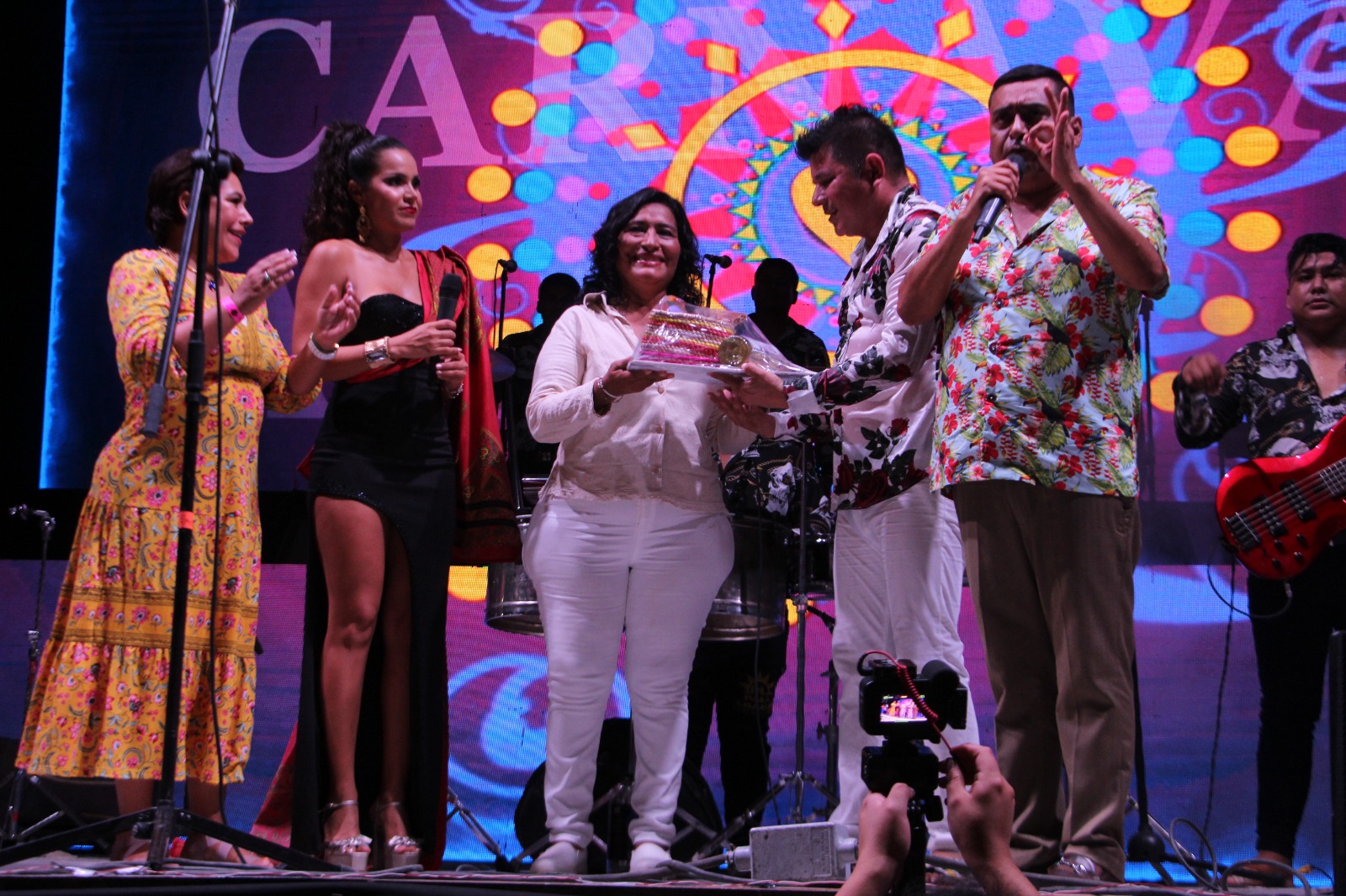 La presidenta municipal, Abelina López, subió al escenario para entregar a los artistas invitados un presente, consistente en dulces típicos y mezcal artesanal, asimismo, les reconoció por su talento, trayectoria y por formar parte del magno evento.