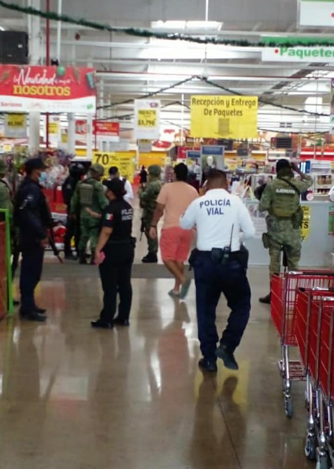 Acapulco, Gro., 20 diciembre del 2021. Falsa alarma resultó el aviso sobre la presencia de un presunto artefacto explosivo en la tienda Soriana de la colonia Emiliano Zapata, originó el despliegue fuerzas policiacas.