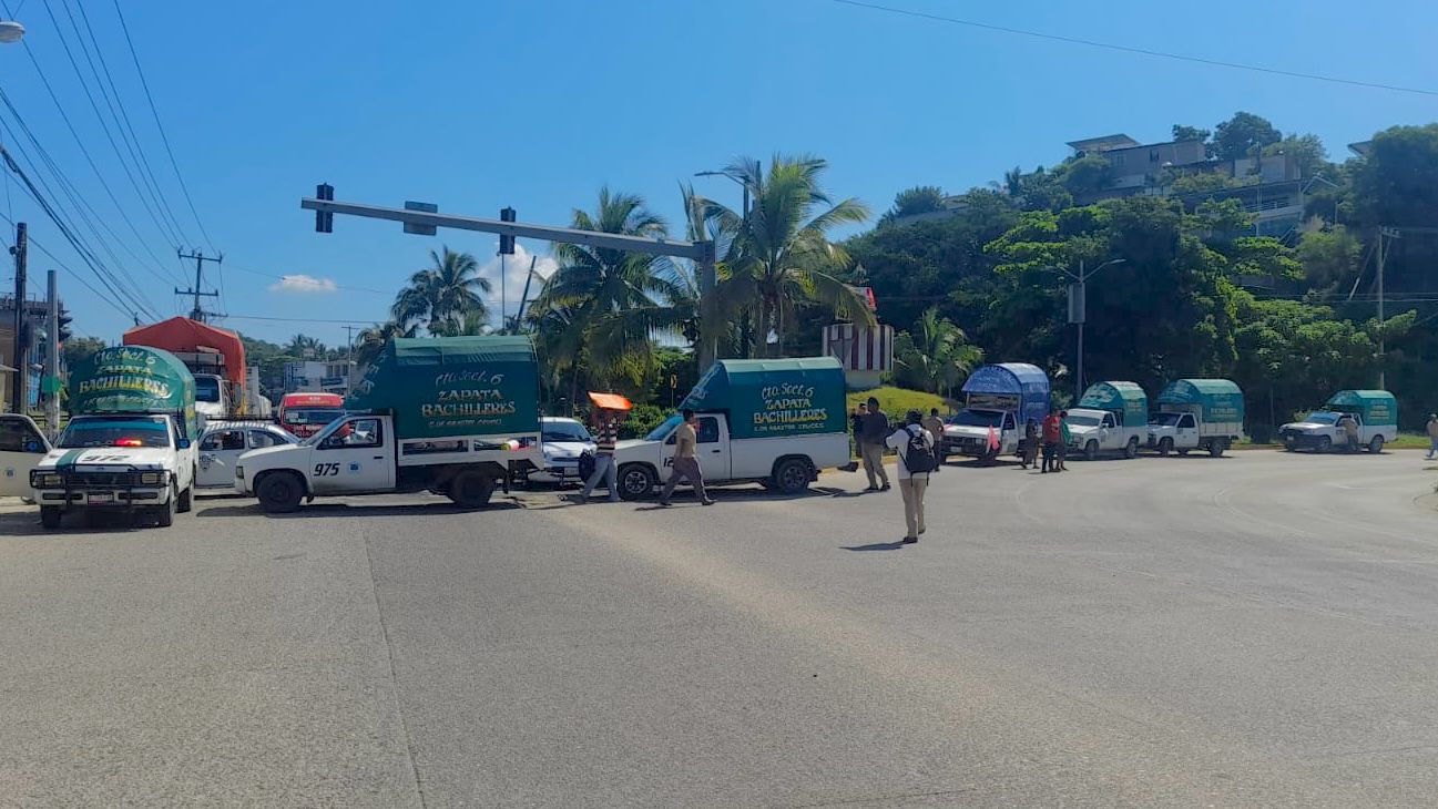En la protesta transportistas de distintas rutas se unieron para cerrar la circulación de la carretera en donde algunos ciudadanos locales y turistas buscan la forma de ingresar al puerto de Acapulco.