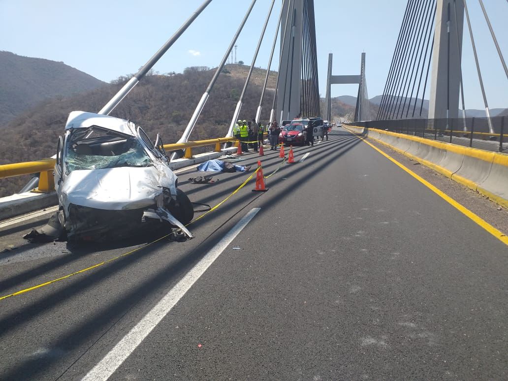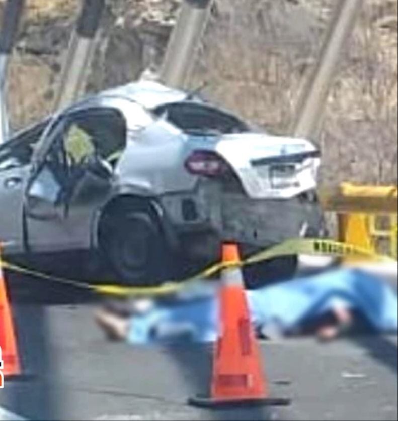El percance ocurrió cerca del mediodía, cuando el conductor del vehículo perdió el control y chocó contra el muro de contención, lo que provocó que diera volteretas y saliera una mujer disparada, la cuál cayó al vacío y murió de manera instantánea.