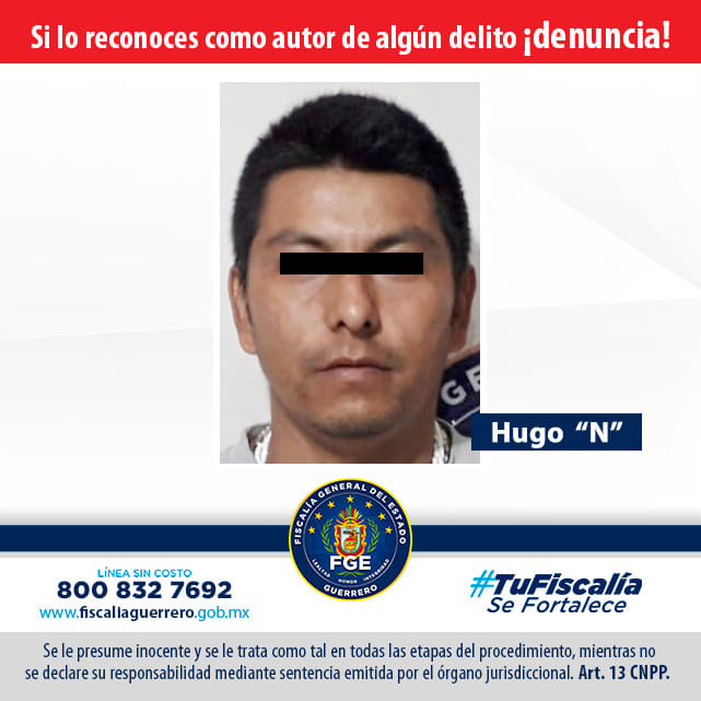 El día 3 de marzo de 2021 se cumplimentó la orden de aprehensión por parte de Policías Ministeriales de Tierra Caliente y Atoyac de Álvarez, quedando detenido Hugo “N” en la parte de la Sierra en el tramo Nueva Deli entronque Puerto del Gallo, municipio de Atoyac.