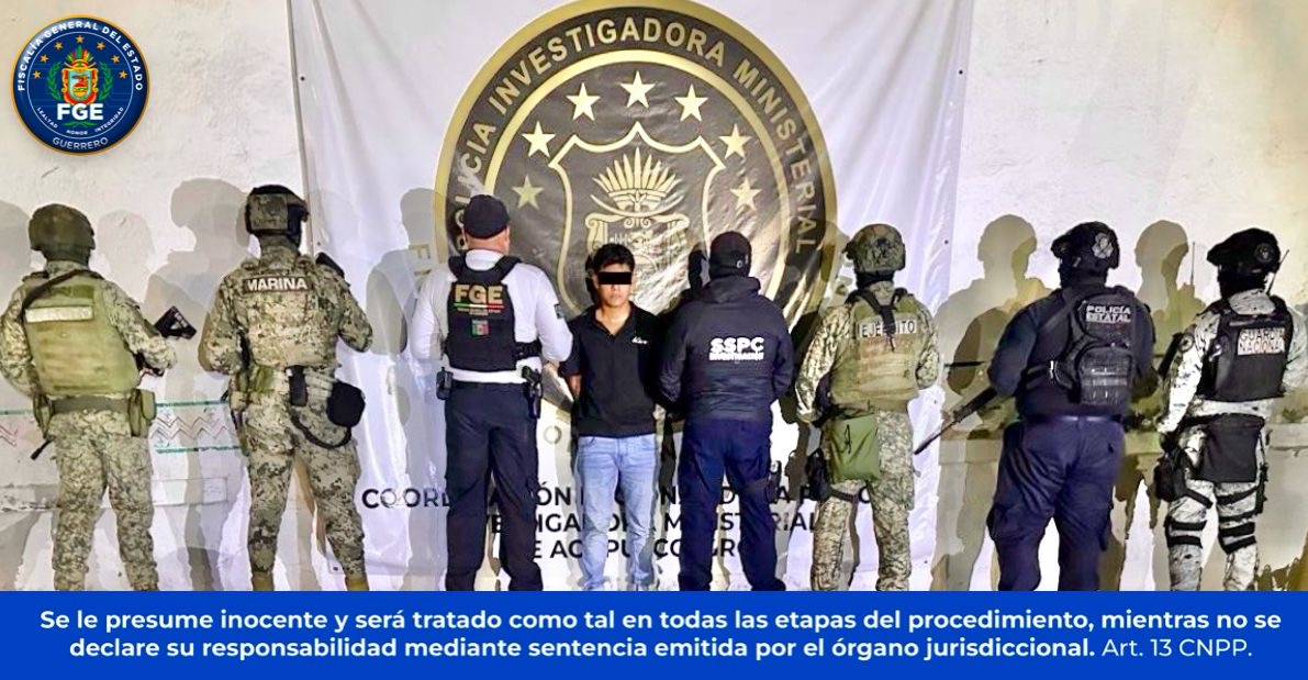 Chilpancingo, Gro., a 5 de julio de 2025. – La Fiscalía General del Estado de Guerrero (FGEGuerrero), en coordinación con la Secretaría de la Defensa Nacional (DEFENSA), Guardia Nacional (GN), Secretaría de Marina (SEMAR), Secretaría de Seguridad y Protección Ciudadana Federal (SSPC) y la Secretaría de Seguridad Pública del Estado (SSPGro), cumplimentó una orden de aprehensión en contra de Javier “N”, por su probable responsabilidad en el delito de homicidio calificado, en agravio de Isaac “N”, en el municipio de Acapulco de Juárez.