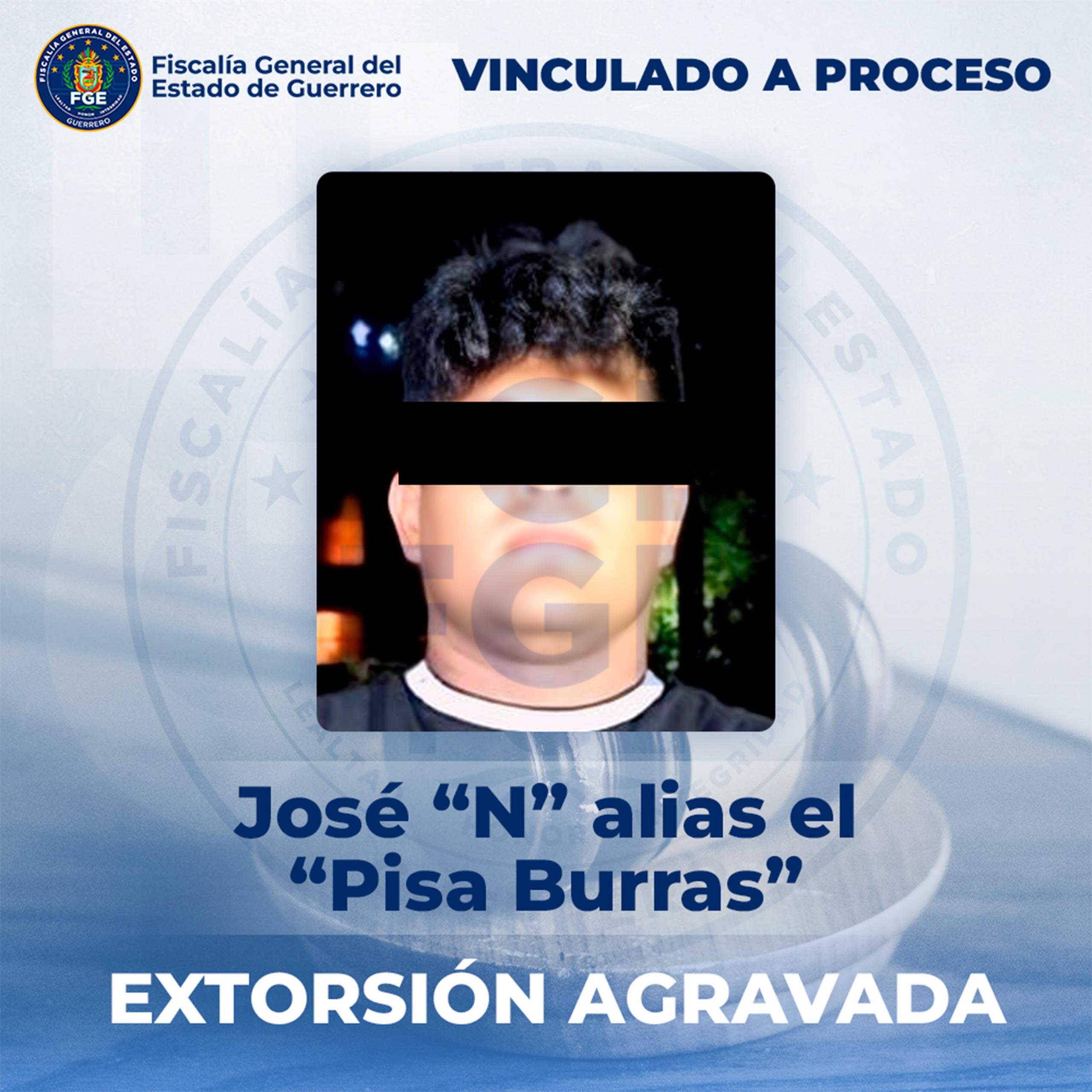 Chilpancingo, Gro., a 16 de julio de 2025.– La Fiscalía General del Estado de Guerrero (FGE Guerrero) logró la vinculación a proceso de José “N”, alias “El Pisa Burras”, por su probable responsabilidad en el delito de extorsión agravada, en agravio de una víctima de identidad reservada, por hechos ocurridos en el municipio de Acapulco de Juárez.