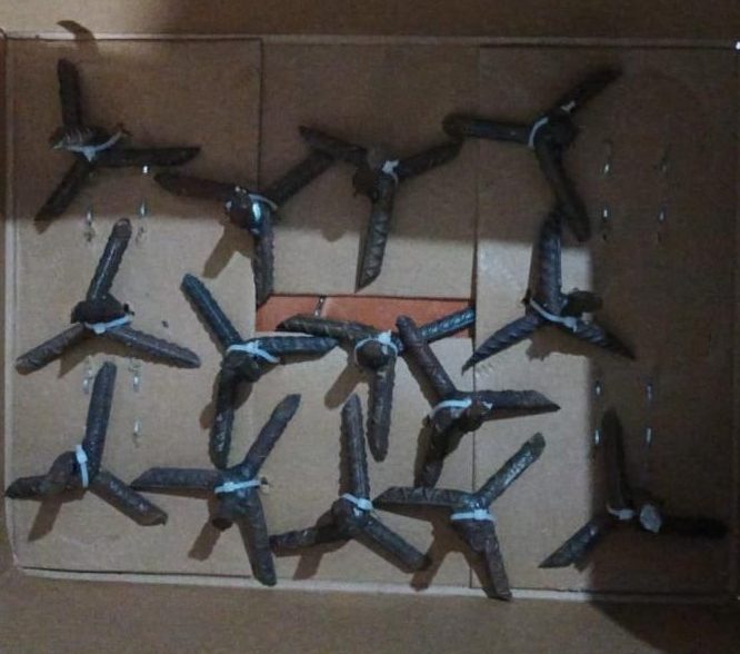 Además, se recuperó una camioneta Jeep gris con reporte de robo y se aseguraron 14 artefactos de fabricación artesanal conocidos como poncha llantas.