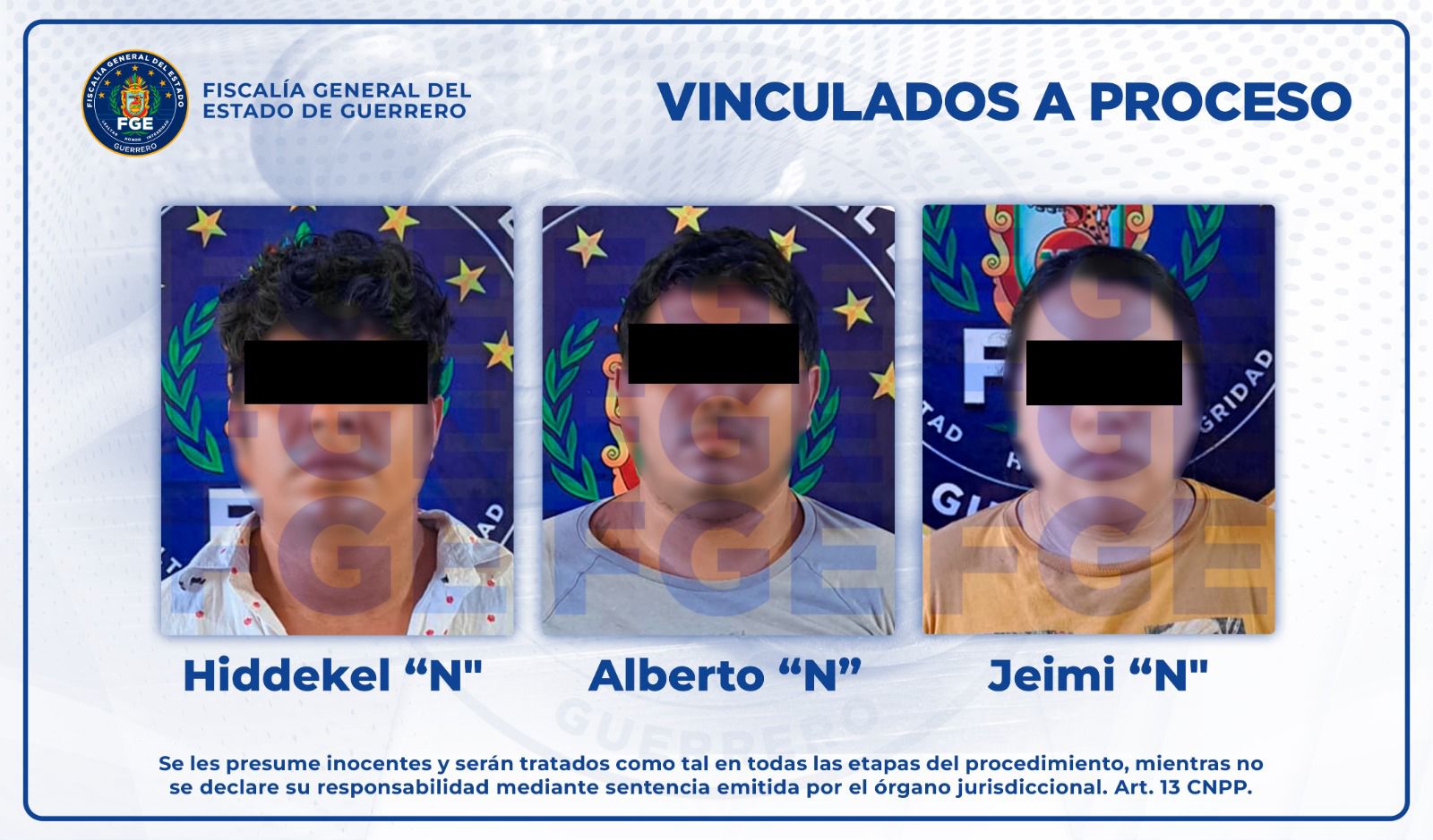 Durante la audiencia inicial realizada este viernes, el Ministerio Público de la FGE Guerrero presentó los datos de prueba suficientes, los cuales fueron analizados por el juez de control, quien dictó el auto de vinculación a proceso para los tres imputados por el primero de los delitos mencionados. En cuanto al segundo ilícito, solo se vinculó a Santos “N”.