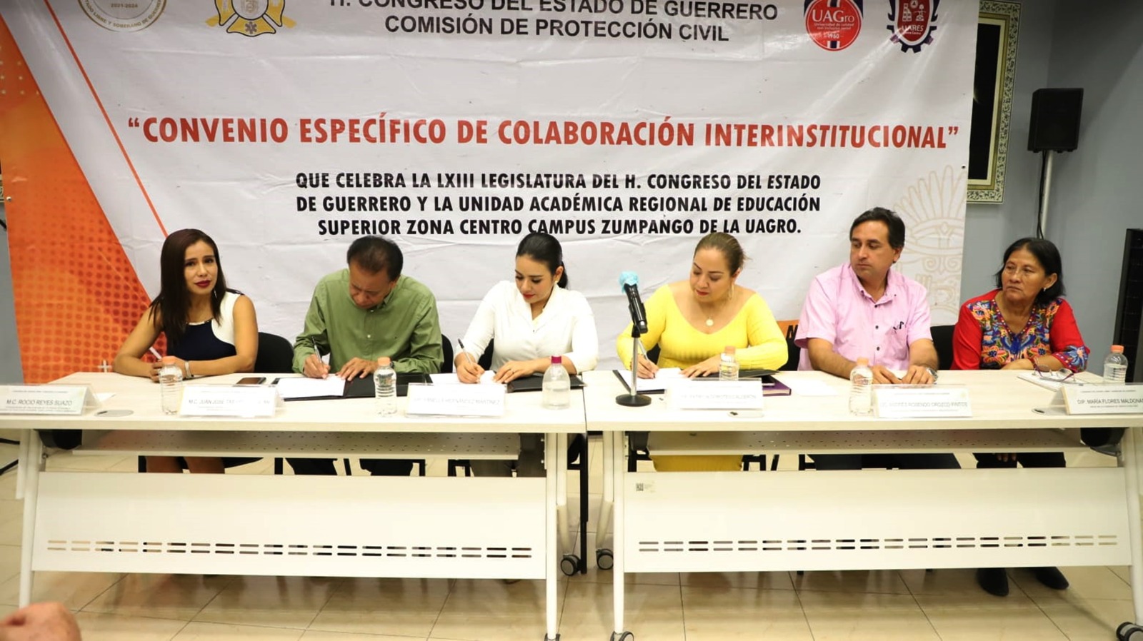 Presenciaron el acto el secretario de Servicios Financieros y Administrativos del Congreso, Andrés Rosendo Orozco Pintos; el director del Instituto de Estudios Parlamentarios Eduardo Neri, Eusebio Pérez Almontes; la coordinadora de Vinculación de dicha unidad académica, Rocío Reyes Suazo; el coordinador del Programa Educativo de Ingeniería en Prevención de Desastres y Protección Civil de la Uagro, José Taboada Miranda; el coordinador de Protección Civil de la Uagro, Apolonio Bahena Salgado y el subcoordinador de la Unidad Interna de Protección Civil del Congreso, Javier Ignacio Nájera Ramírez.