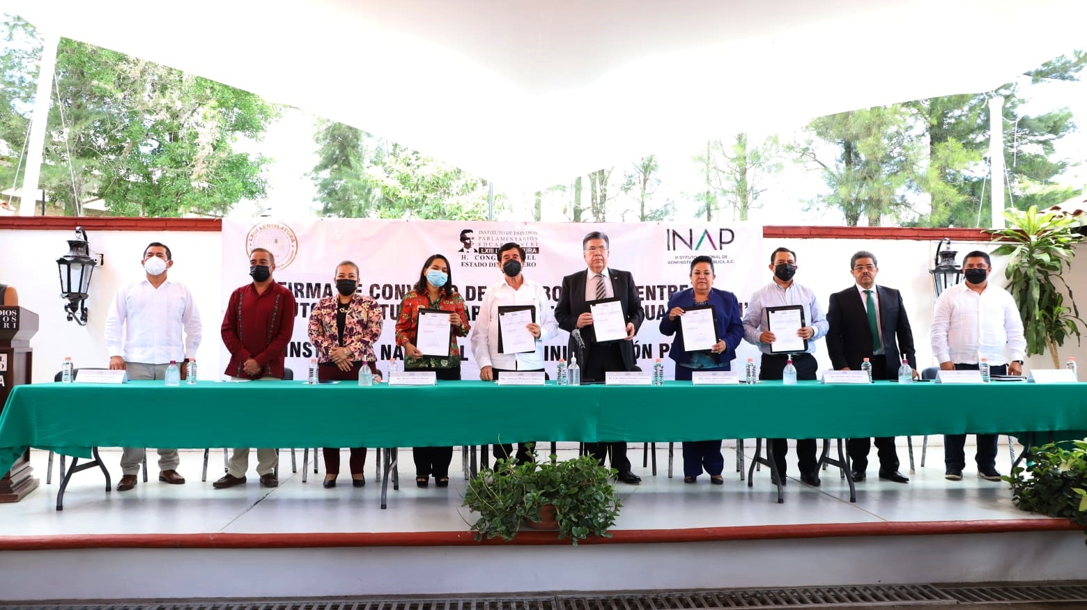 Chilpancingo, Gro., a 15 de agosto de 2022.- El Congreso del Estado, a través del Instituto de Estudios Parlamentarios “Eduardo Neri” (IEPEN), firmó un convenio de colaboración con el Instituto Nacional de Administración Pública (INAP), a fin de vincular y fortalecer las actividades académicas, culturales, de investigación y análisis entre ambas instancias, que permita eficientar los procesos legislativos y coadyuve a mejorar el entorno político y social de la entidad.