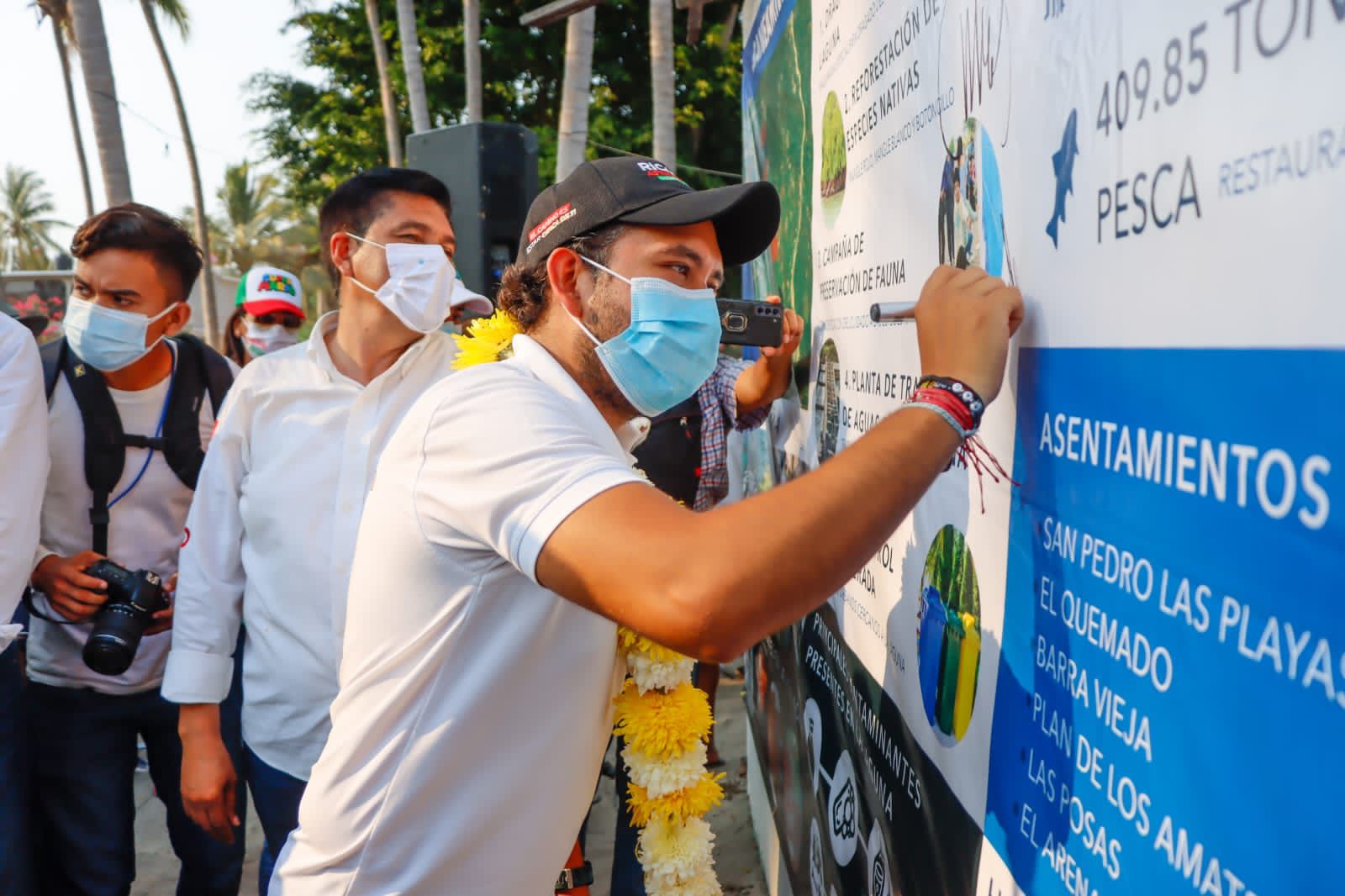 Entre los compromisos que firmó el candidato a la diputación, destacan el dragado de la laguna de Tres Palos, la construcción de planta de tratamiento de aguas del río la Sabana, reforestación de especies, entre otras.