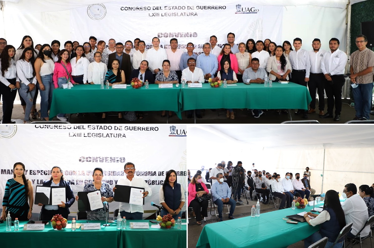 El objetivo es establecer las disposiciones generales de colaboración entre el Congreso local y la UAGro para que, de manera conjunta, desarrollen proyectos académicos, literarios, culturales y en materia jurídica, que permitan el intercambio de conocimientos y capacidades en favor de las y los servidores públicos del Congreso y el alumnado de la máxima casa de estudios.