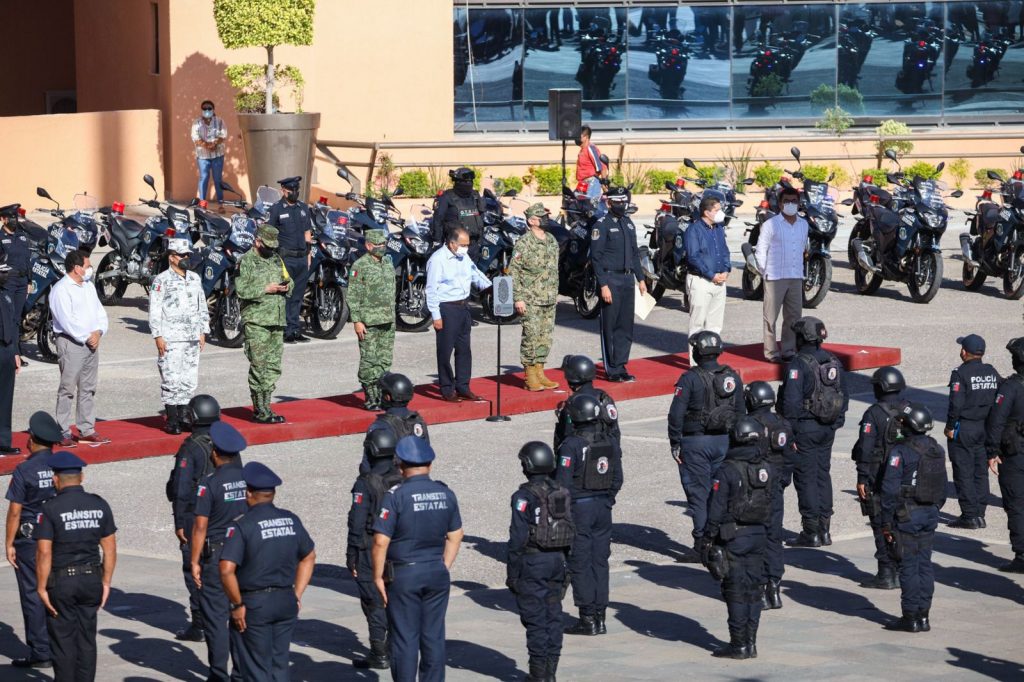 En su intervención, el secretario de Seguridad Pública, David Portillo Menchaca informó que con una inversión de 9 millones 50 mil 900 pesos del Fondo de Aportaciones para el Fortalecimiento de la Seguridad Pública del ejercicio fiscal 2021, se adquirieron 50 motocicletas- patrulla que se asignaron a elementos de la policía y Tránsito Estatal.