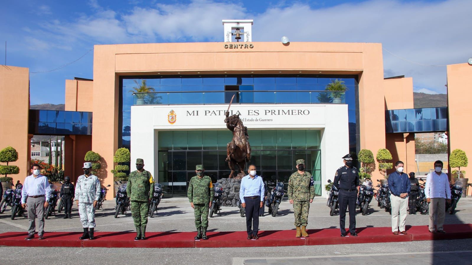 En este acto celebrado en la explanada del Recinto de las Oficinas del Poder Ejecutivo estuvieron el comandante de la Novena Región Militar, Eufemio Ibarra Flores; el comandante de la Octava Región Naval, Julio César Pescina Ávila; el coordinador de la Guardia Nacional, Lucio Vergara Gómez; el comandante de la 35 zona militar, Miguel Ángel Aguirre Lara; el Fiscalía General del Estado, Jorge Zuriel de los Santos Barrila.