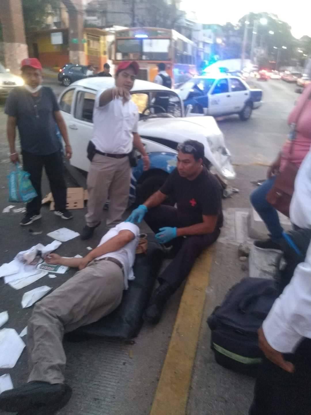 De acuerdo a los reportes, fueron dos taxis de color azul con blanco los que se vieron involucrados en dicho accidente vial dejando.