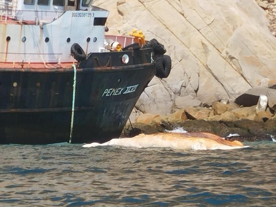 El cadáver de una ballena fue arrastrado por el fuerte oleaje producido en las últimas horas en el puerto de Acapulco.