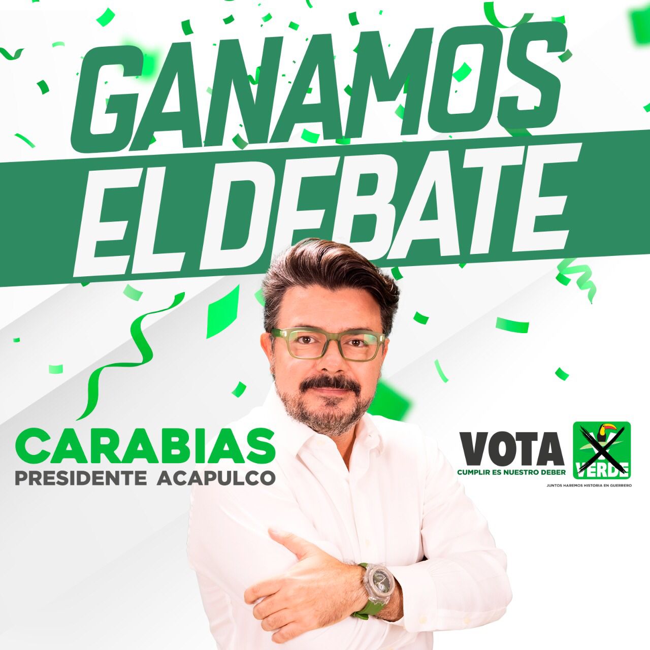 Alejandro Carabias Icaza, candidato del Partido Verde Ecologista de México, a la presidencia municipal de Acapulco, destacó en su participación durante el debate organizado por Instituto Electoral y de Participación Ciudadana del estado de Guerrero al ser el candidato con mayor definición y respaldo técnico en sus propuestas.