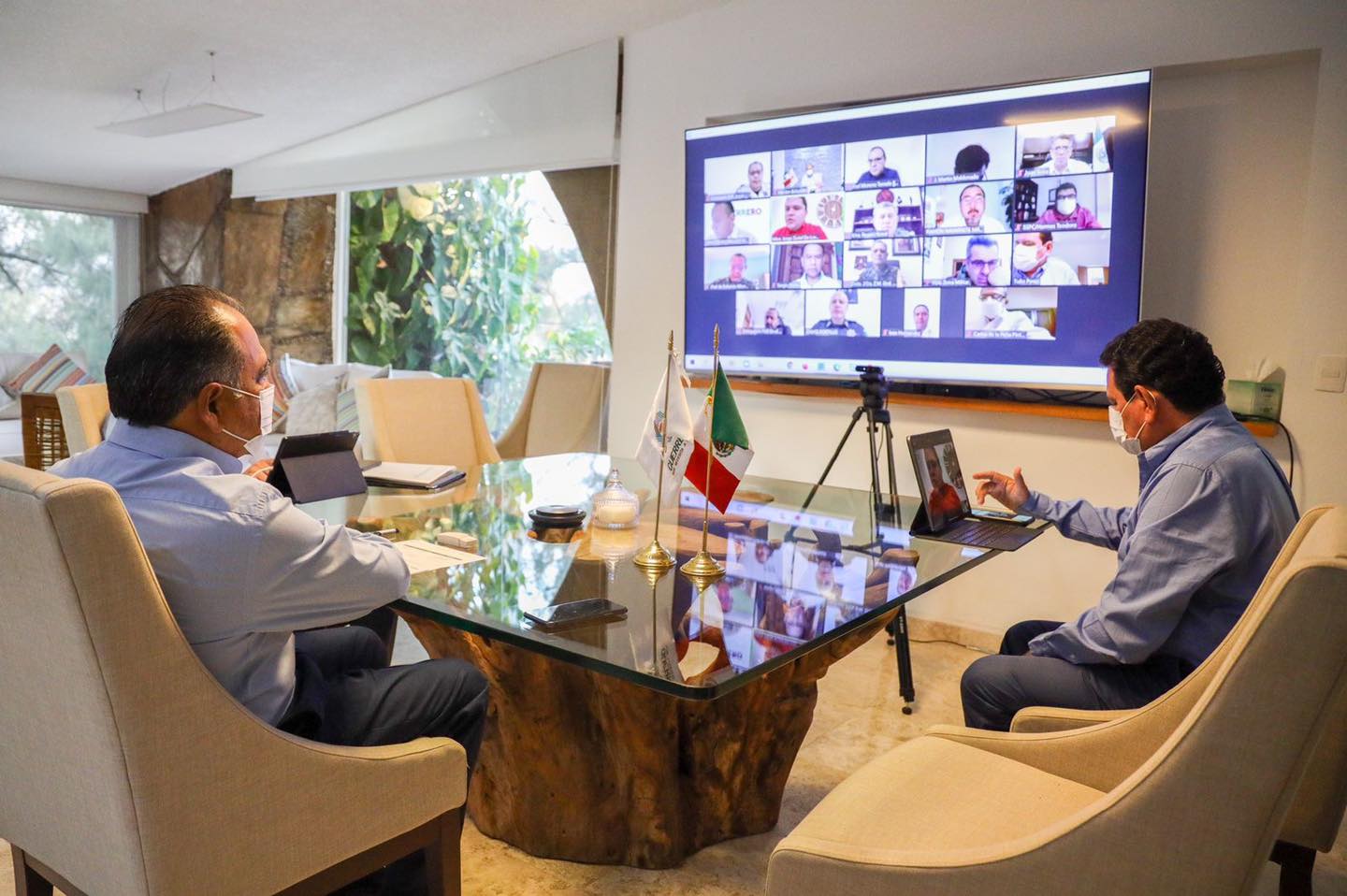 Chilpancingo., Gro, 28 de abril de 2021 – Al sesionar con la Mesa de Coordinación para la Construcción de la Paz, el gobernador Héctor Astudillo Flores, dio seguimiento a los temas prioritarios de seguridad en el estado que contribuyen a mejorar las condiciones de vida de las y los guerrerenses con acciones conjuntas y atención puntual a las incidencias delictivas con apoyo de la Secretaría de la Defensa Nacional, Marina, Guardia Nacional, Policía Estatal, Fiscalía General del Estado y la Fiscalía General de la República.