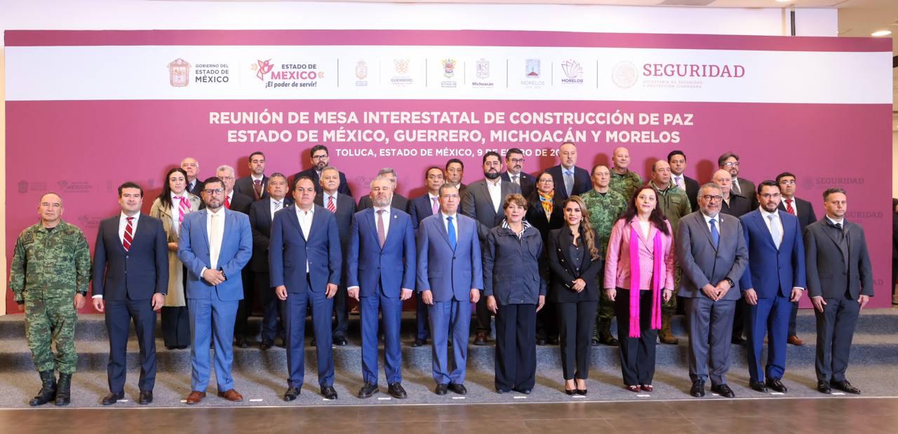 Toluca, Estado de México. 9 de enero del 2024.- La gobernadora Evelyn Salgado Pineda participó en la Reunión de la Mesa Interestatal de Construcción de Paz entre los estados de México, Michoacán, Morelos y Guerrero, para fortalecer una estrategia integral de colaboración y poner en marcha el Operativo Blindaje con acciones de inteligencia en las zonas limítrofes de las entidades, a efecto de combatir a los generadores de violencia y delitos de alto impacto.