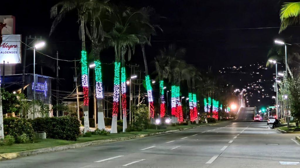 El bulevard de las naciones, que se caracterizó porque a mediados de noviembre de 2023 ya estaba libre de basura y escombros, tras el paso del huracán Otis, hoy tiene otra cara con dicha iluminación y señalética que ha puesto en marcha el Gobierno estatal.
