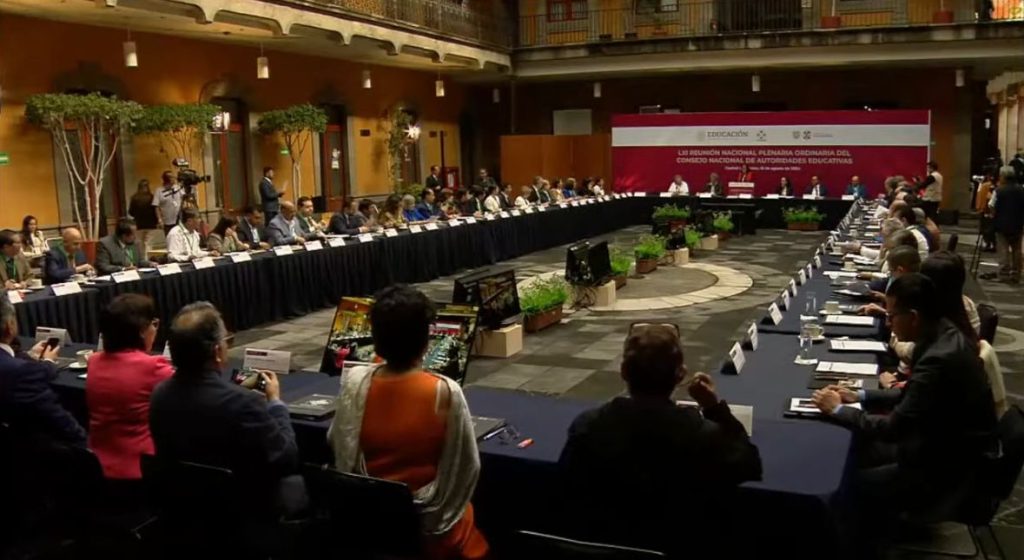 A la reunión asisten las y los secretarios de Educación de toda la República y que preside la secretaria de Educación Pública, Leticia Ramírez Amaya, donde se abordarán diversos temas educativos.