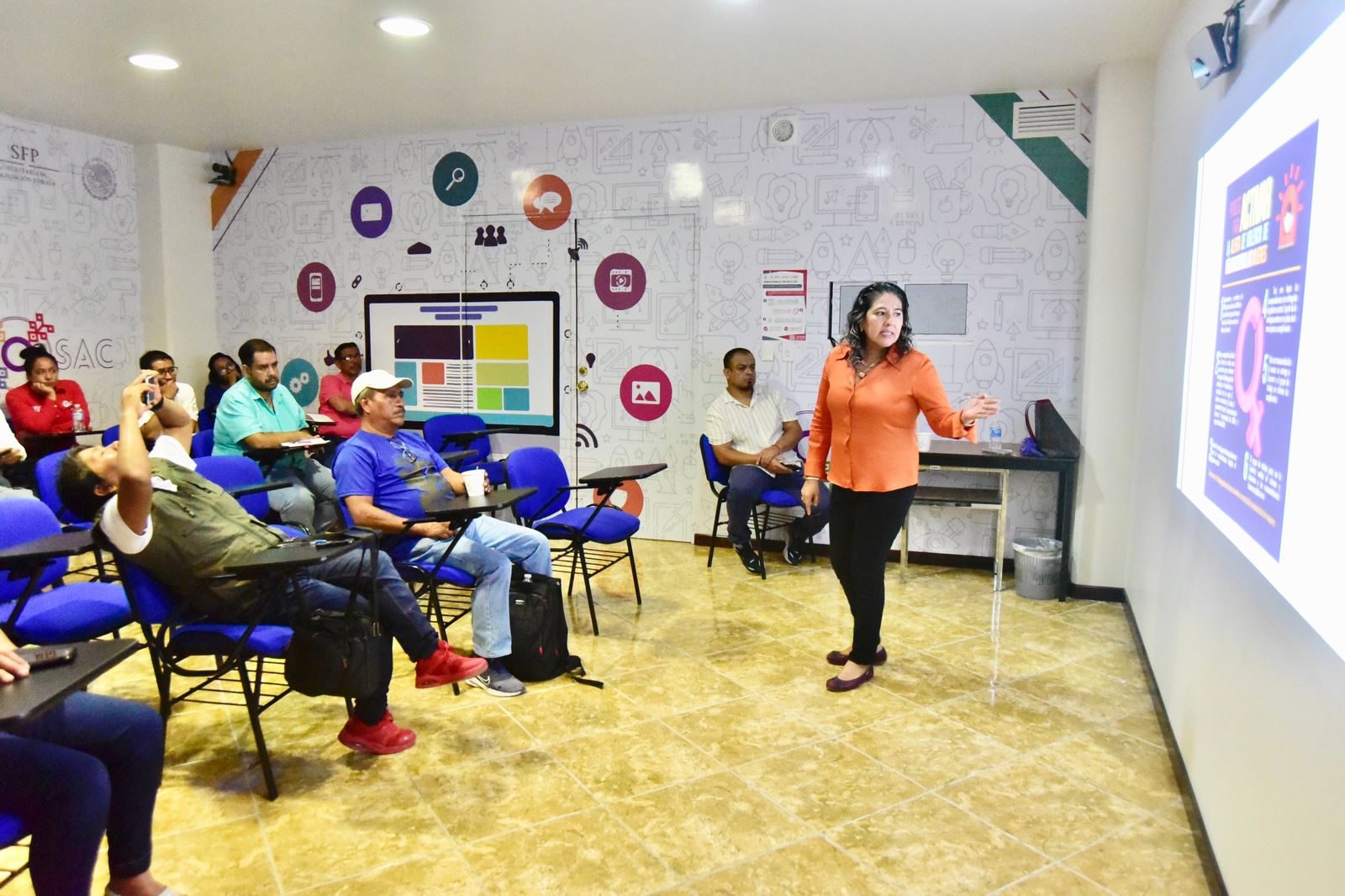 La capacitación fue impartida por la encargada de la Unidad de Género de la Dirección General de Comunicación Social, Guadalupe Francisco Cabañas, quien les dotó de herramientas para elaborar narrativas con enfoque de derechos humanos que abonen a la erradicación de la Violencia de Género contra las Mujeres, Adolescentes y Niñas.