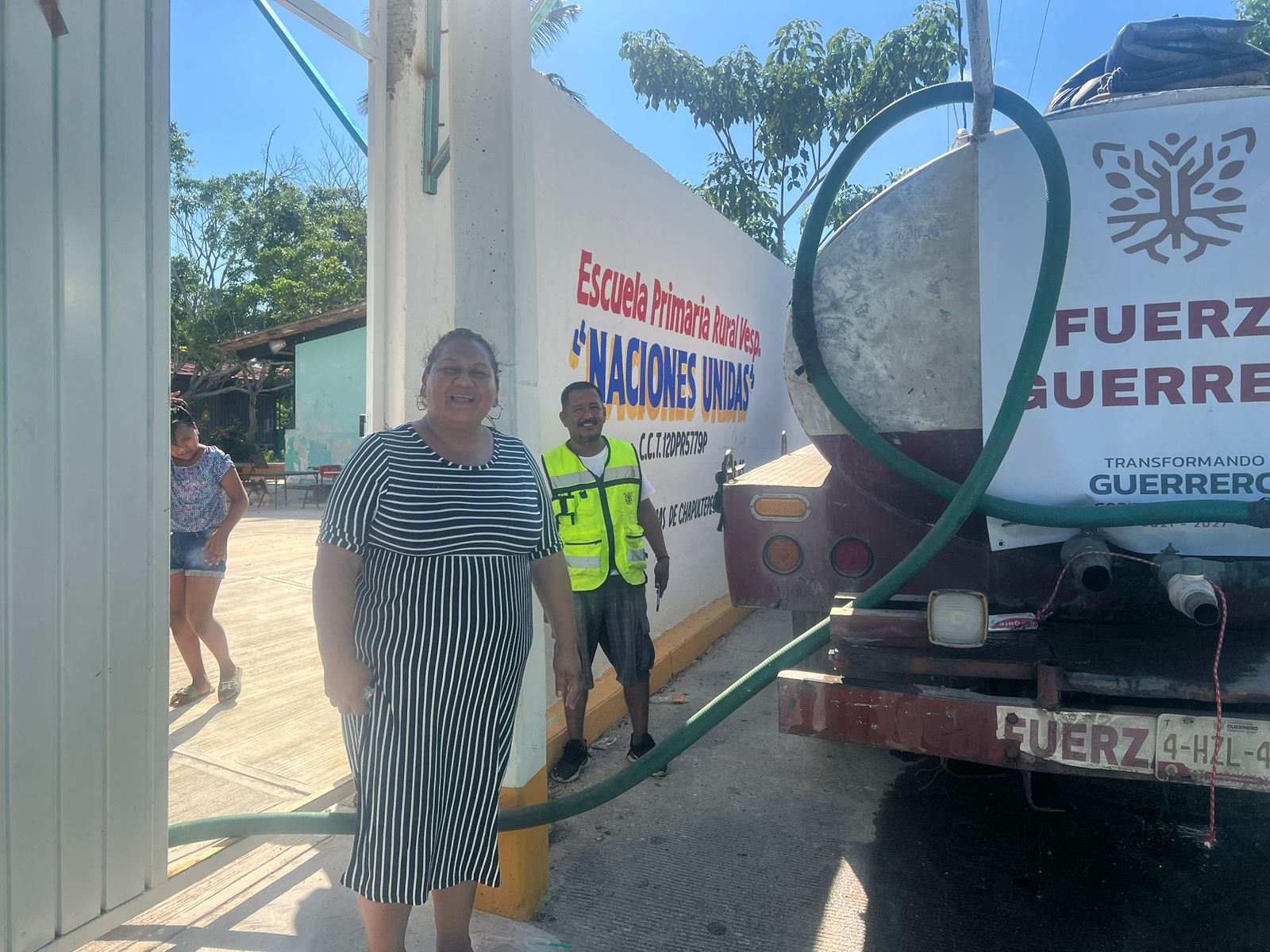 Acapulco, Gro., 13 de octubre de 2024.- Con la finalidad de garantizar los servicios básicos en las escuelas de Guerrero para este regreso a clases, tras el paso del huracán John, la Subsecretaría de Finanzas, de la Secretaría de Finanzas y Administración de Guerrero, abastece de agua potable a los planteles educativos de Acapulco.