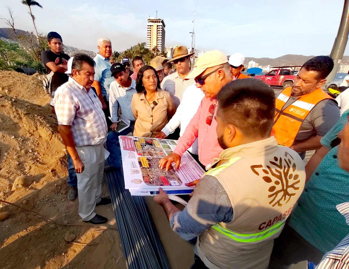 Atendiendo instrucciones de la gobernadora, Evelyn Salgado Pineda, la Comisión de Agua Potable, Alcantarillado y Saneamiento del Estado de Guerrero (CAPASEG) trabaja coordinadamente con el municipio, señaló el titular del Organismo estatal a la alcaldesa porteña, durante un recorrido que realizaron en la Avenida Costera, a la altura del asta bandera, donde le informó de la construcción del colector sanitario Papagayo, el cual lleva un avance de más de 600 metros lineales.
