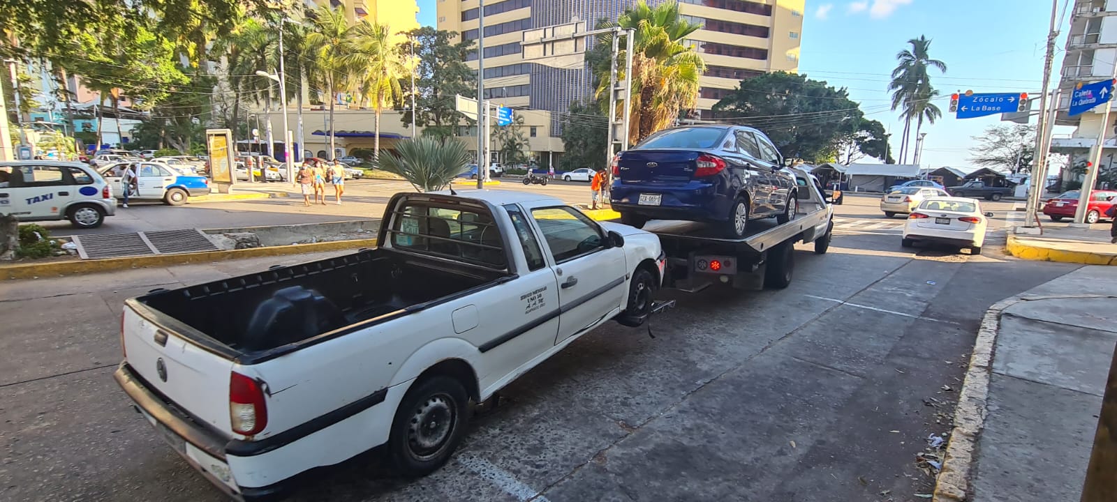 Acapulco, Gro., 25 de febrero de 2022.- Elementos de la Secretaría de Seguridad Pública qué operan las grúas de esta dependencia hacen su ‘agosto’ levantando los vehículos en avenida Wilfrido Massieu.