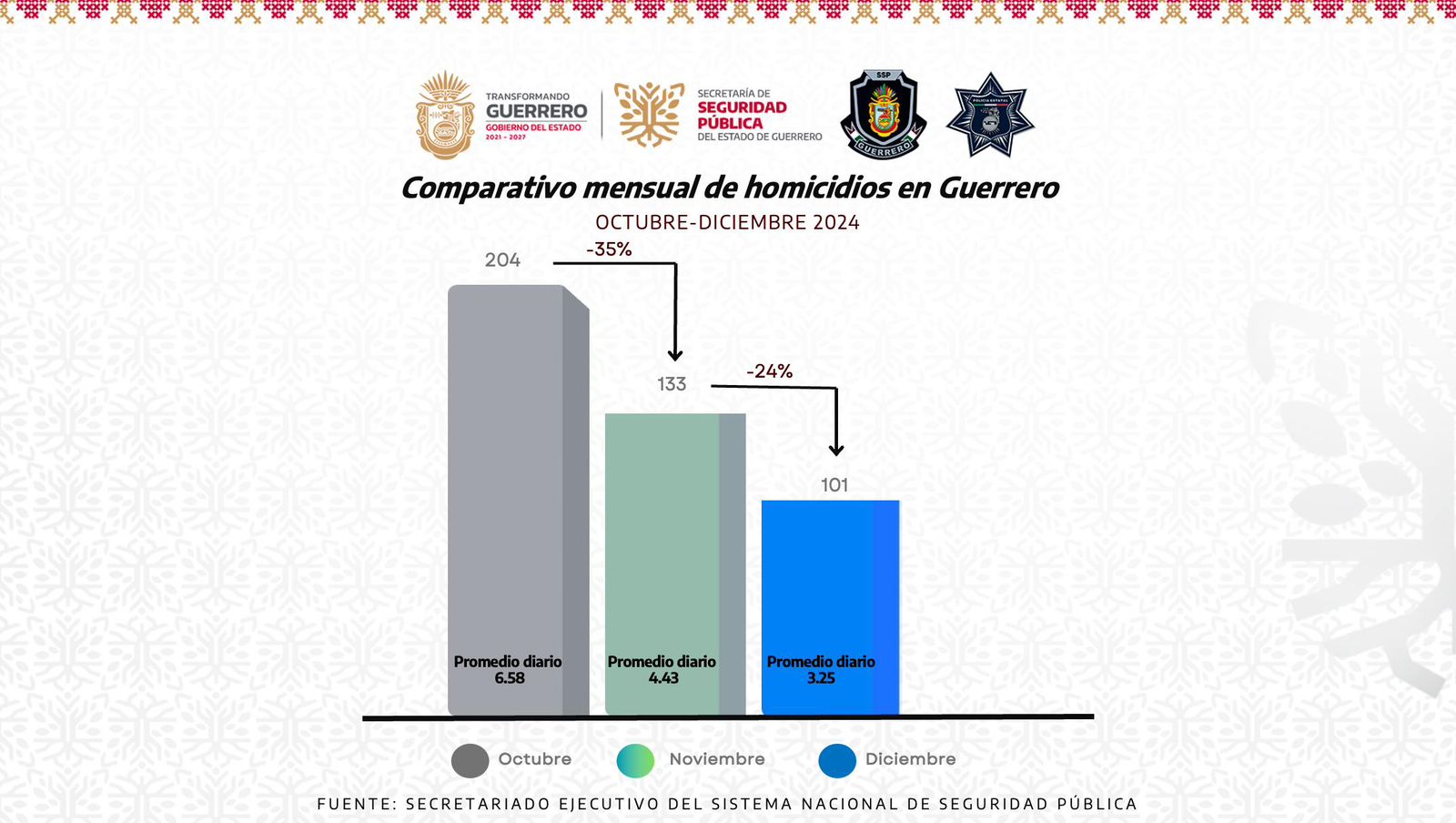 *Durante el periodo octubre-diciembre 2024, los homicidios dolosos en la entidad registraron una reducción cercana al 50%