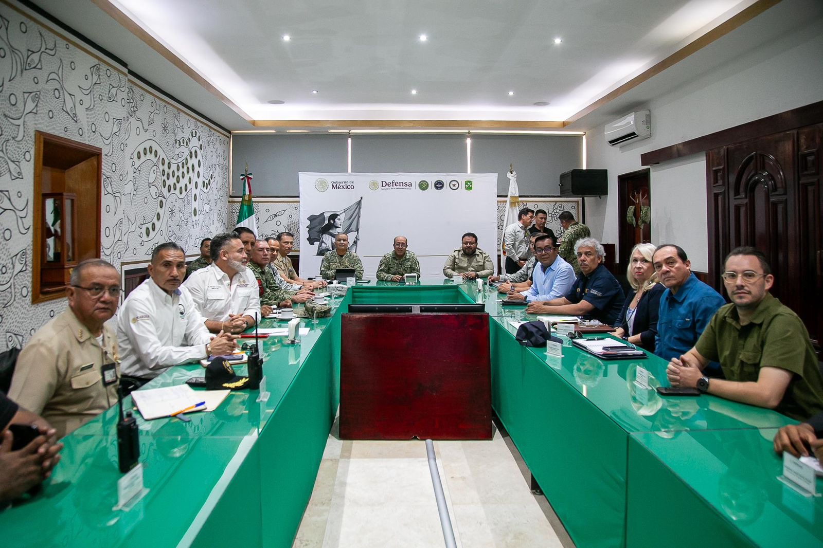 El encuentro fue encabezado por el comandante de la Novena Región Militar, general José Roberto Flores Montes de Oca, y contó con la participación de autoridades militares, federales, estatales y municipales, quienes revisaron la estrategia integral de seguridad, logística y protección civil que se implementará antes, durante y después de las celebraciones del 31 de diciembre.